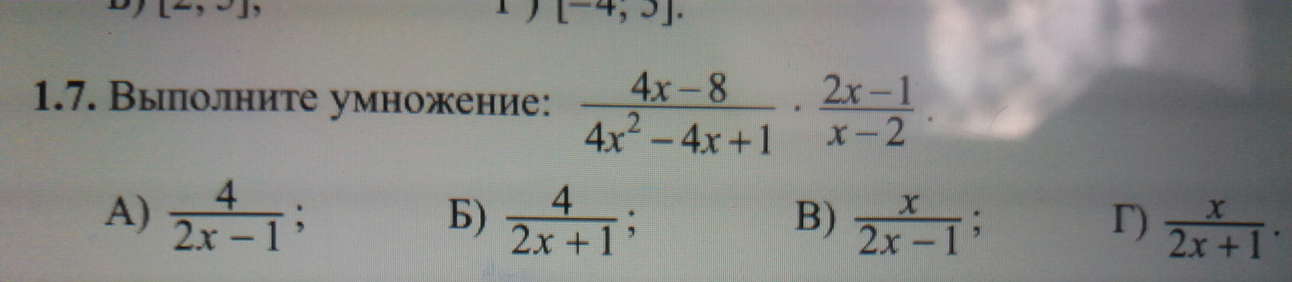 frac{4x-8}{4 x^{2} -4x+1} * frac{2x-1}{x-2}= frac{4(x-2)}{(2x-1) ^{2} }  * frac{2x-1}{x-2}= frac{4}{2x-1}