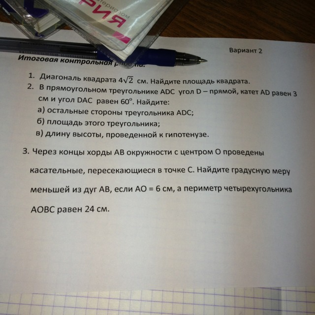 1.Обозначим квадрат ABCD,где диагональ AC = 4 корня из двух,а стороны AB = BC = CD = AD = x.