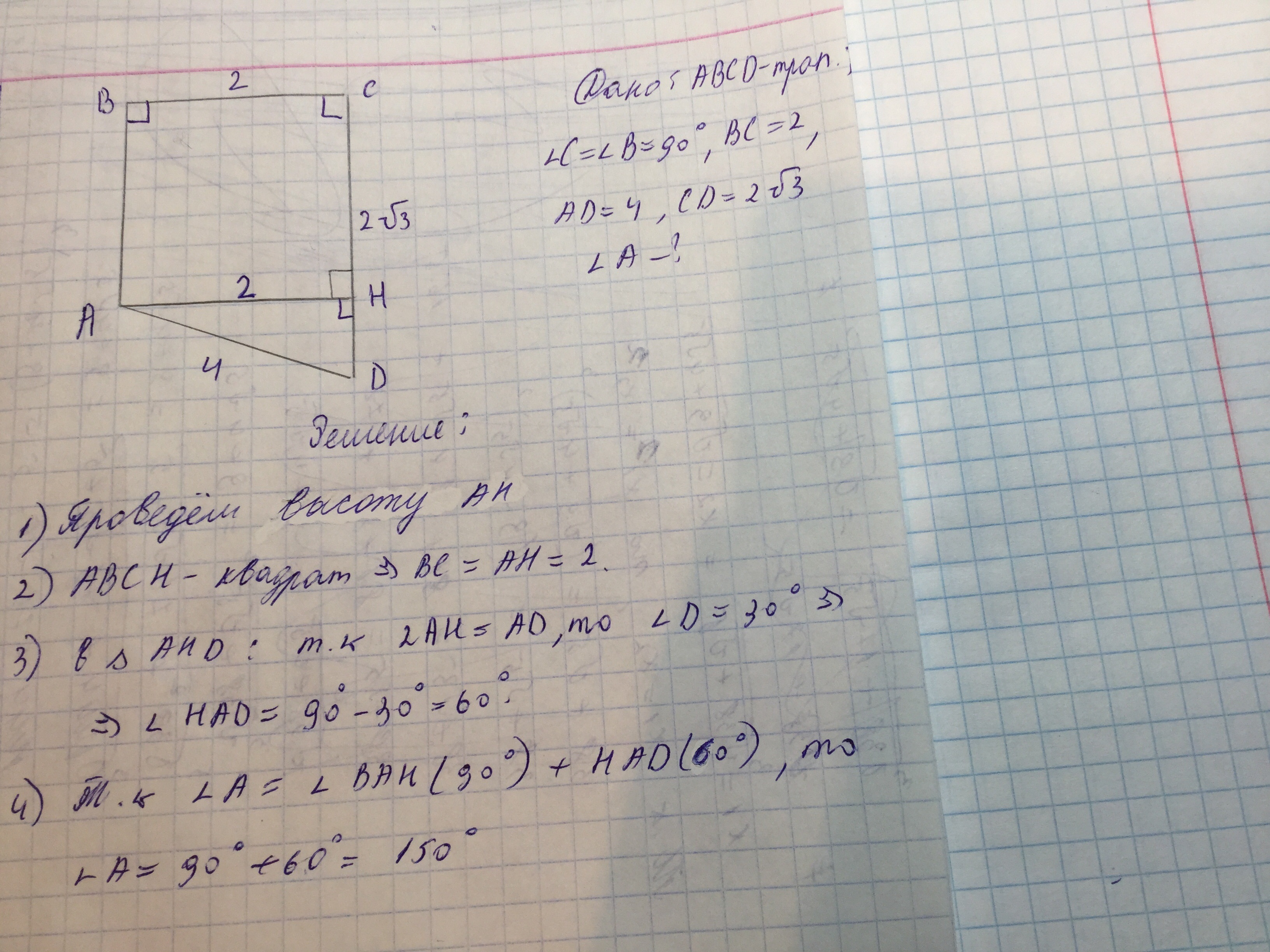 и треугольник DAH прямоугольный, а отношение DH к DA будет sinA