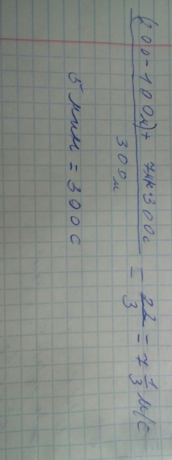 Два человека двигаются в одну сторону.В начальный момент времени расстояние между ними S=200м.Скорость первого, догоняющего,пешехода V=7 м/сек.Определите скорость второго, если известно, что через t=5 мин расстояние между ними составило S=100м.
