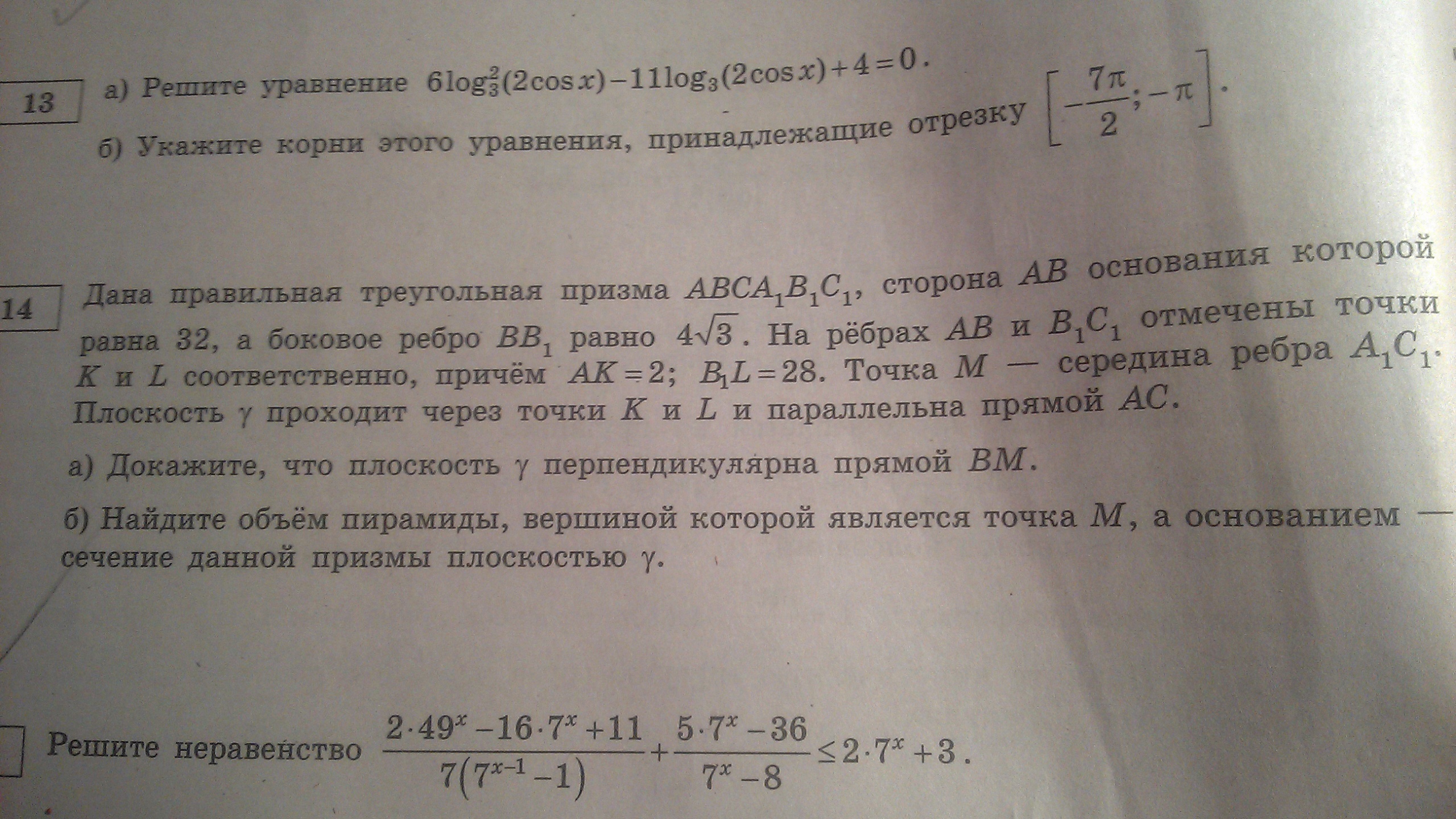 а) Решите уравнение 6log23(2cosx)–11log3(2cosx)+4=0
