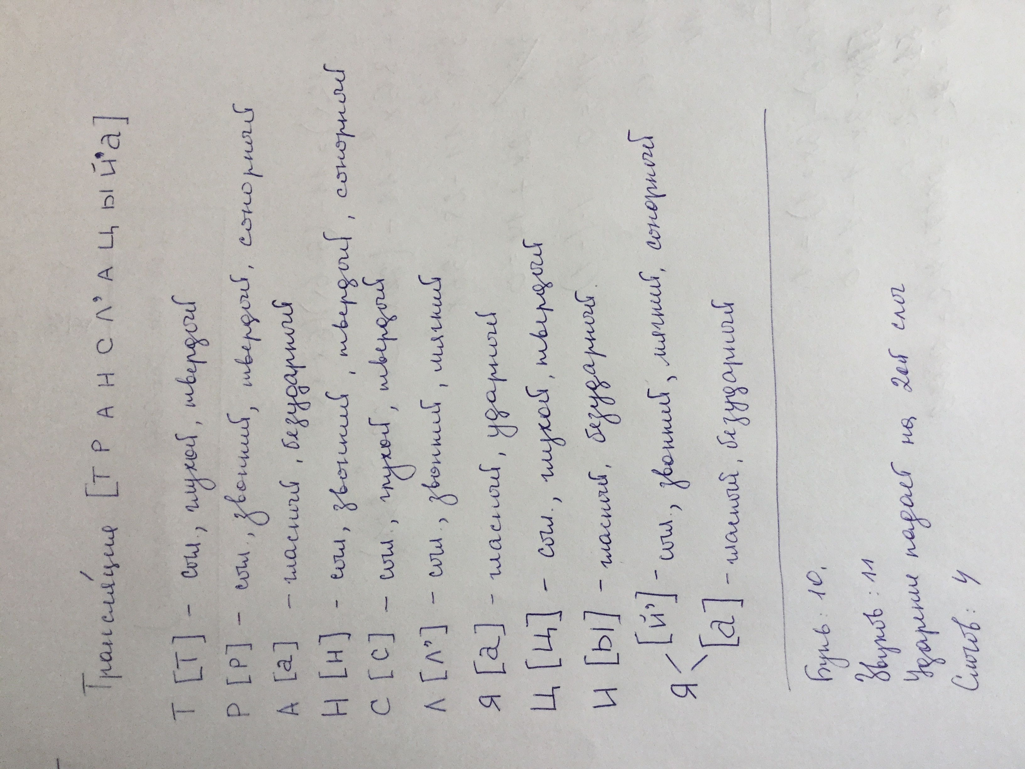 (тра-нсля-ци-я) 4 слога, 10 букв, 11 звуков