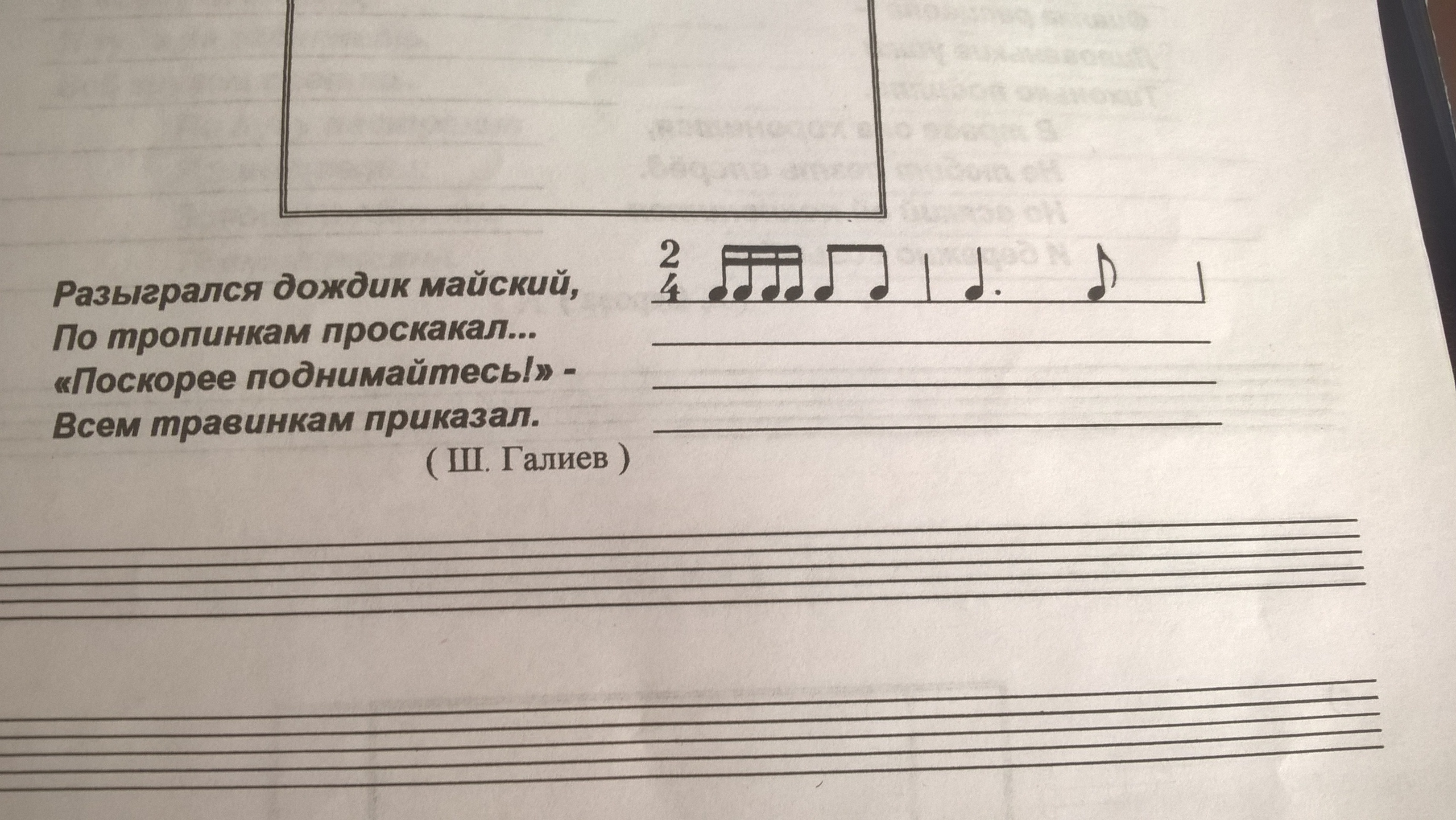 сочините ритм разыгрался дождик майский по тропинкам проскакал поскорее поднимайтесь всем травинкам приказал