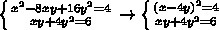 x-4y=2, откуда x=4y+2 и подставляем во 2-е уравнение