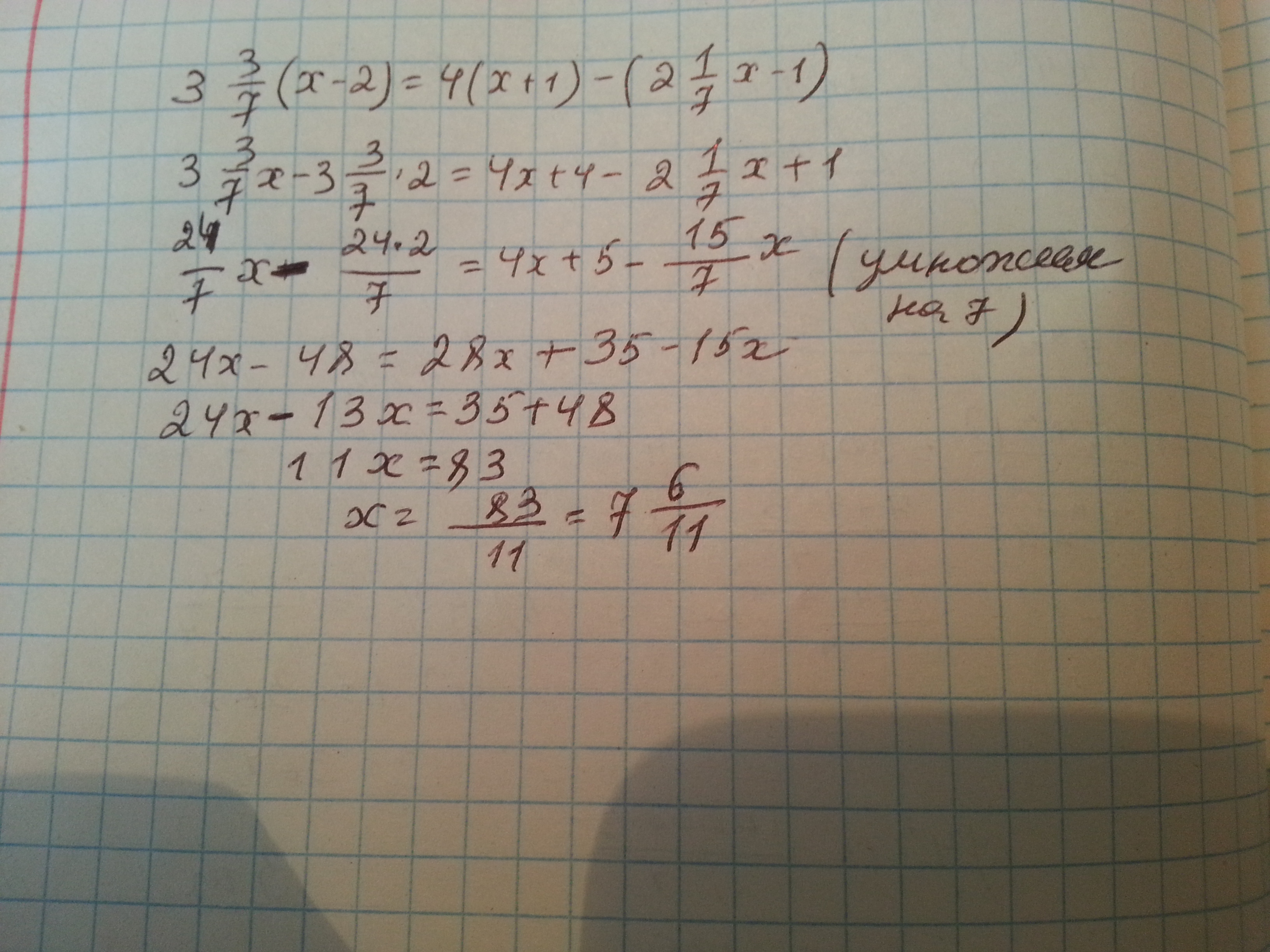 24x/7 - 48/7 = 4x + 4 - 15x/7 + 1