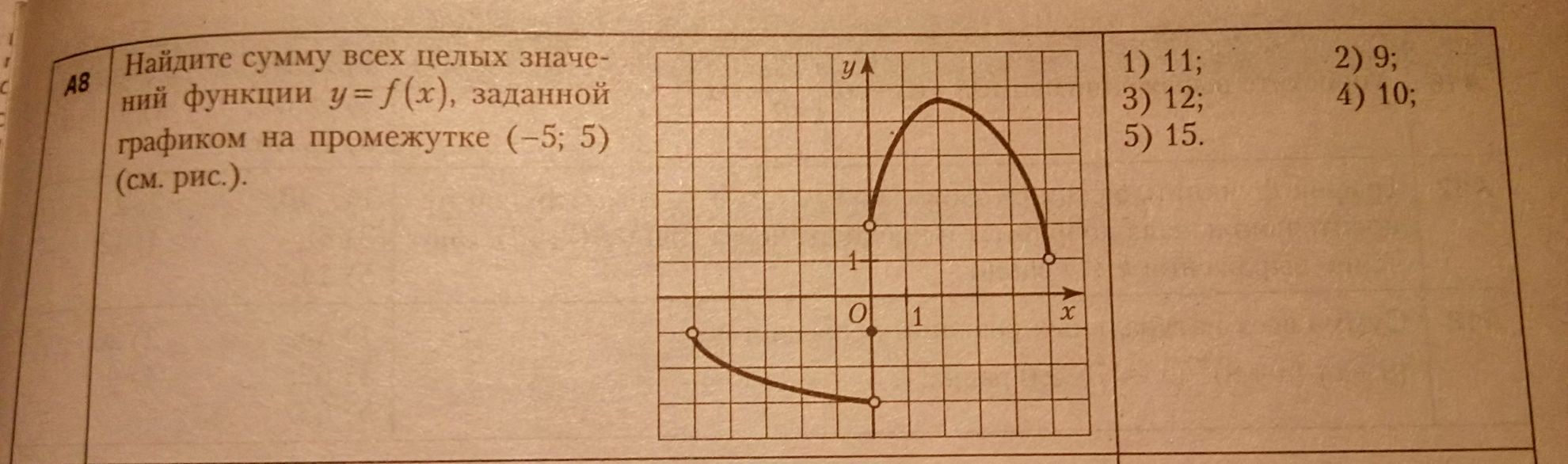 Найдите сумму всех целых значений функции y=f(x) заданной графиком на промежутке (-5; 5) (см.рис.).