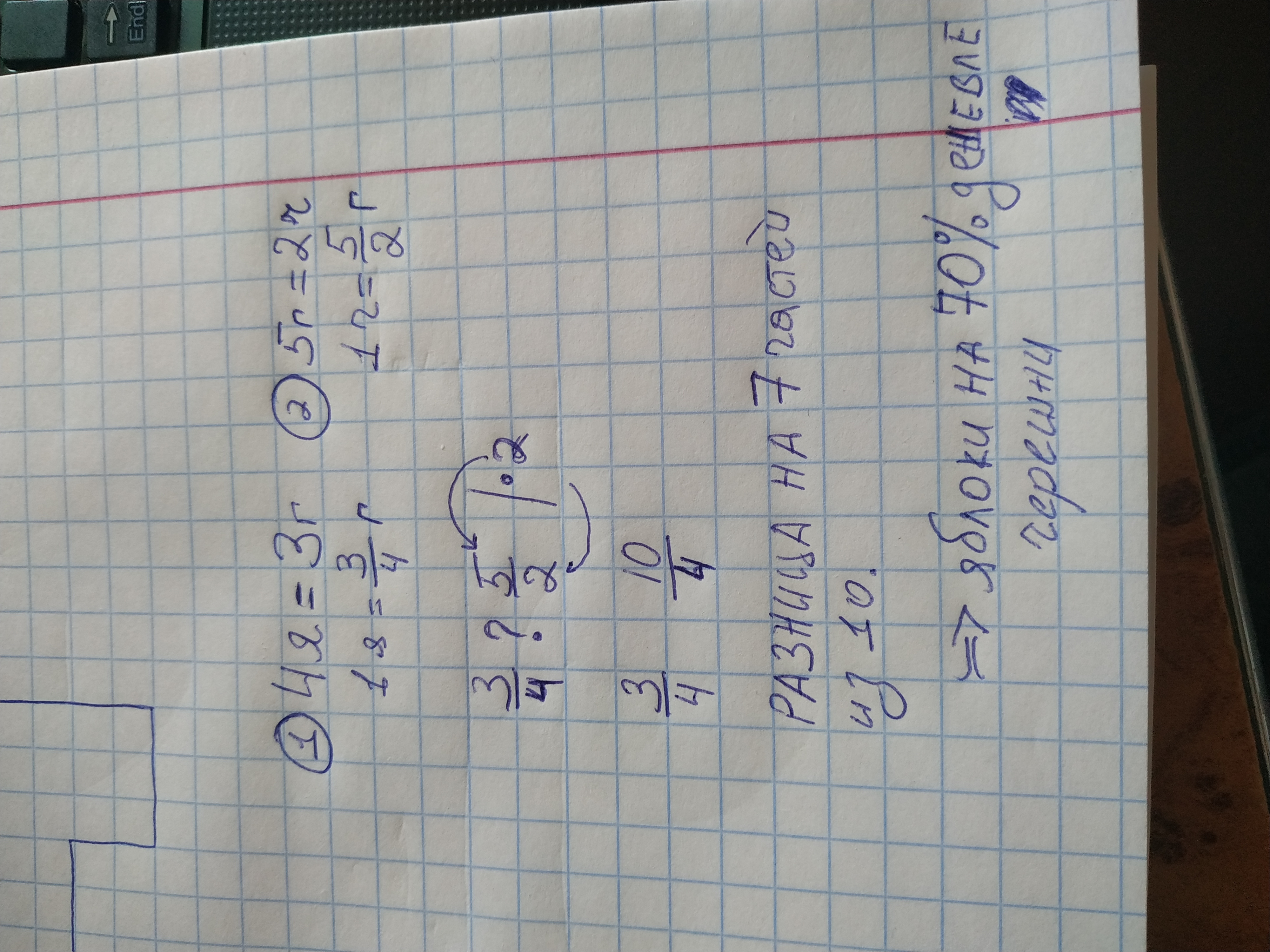 четыре килограмма яблок стоят столько же сколько три килограмма груш,а пять килограммов груш стоят столько же сколько два килограммов черешни . На сколько процентов один килограмм яблок дешевле одного килограмма черешни?