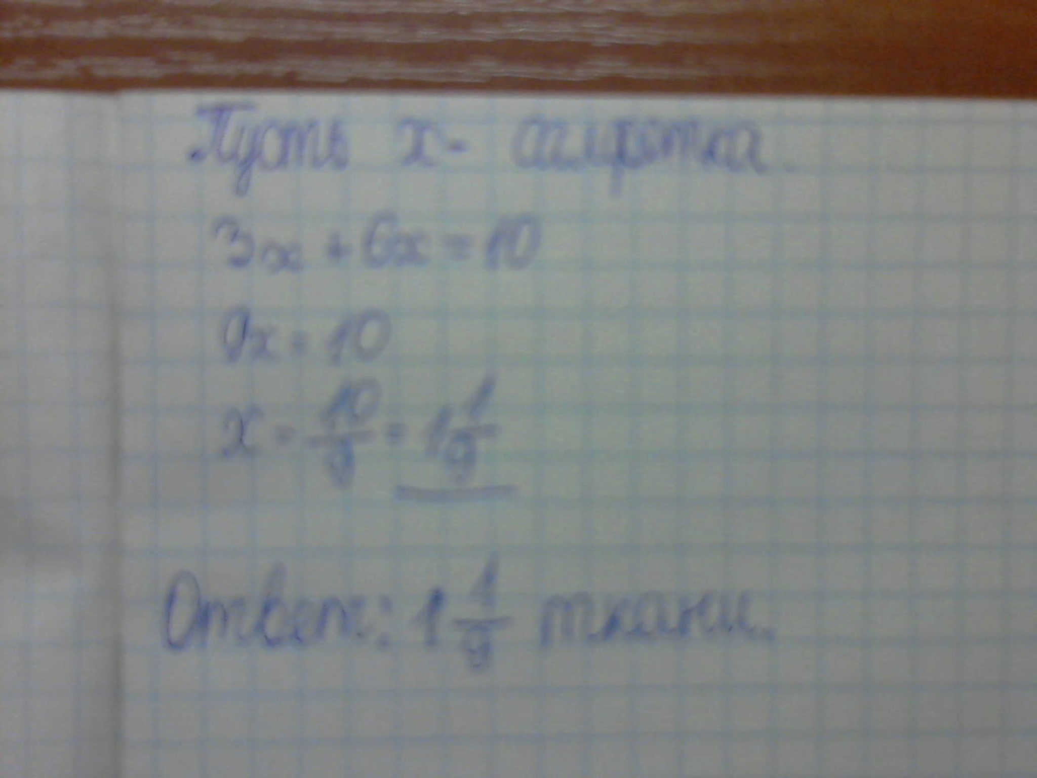 Из куска ткани длиной 10 м сшили 1 полотенце и 6 салфеток. На полотенце израсходовали в 3 раза больше ткани, чем на одну салфетку. Сколько ткани израсходовали на одну салфетку?( решите в виде уравнения)