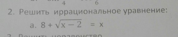 возводим х в квадрат, чтобы убрать квадратный корень. И получим: 8+х-2=х^2