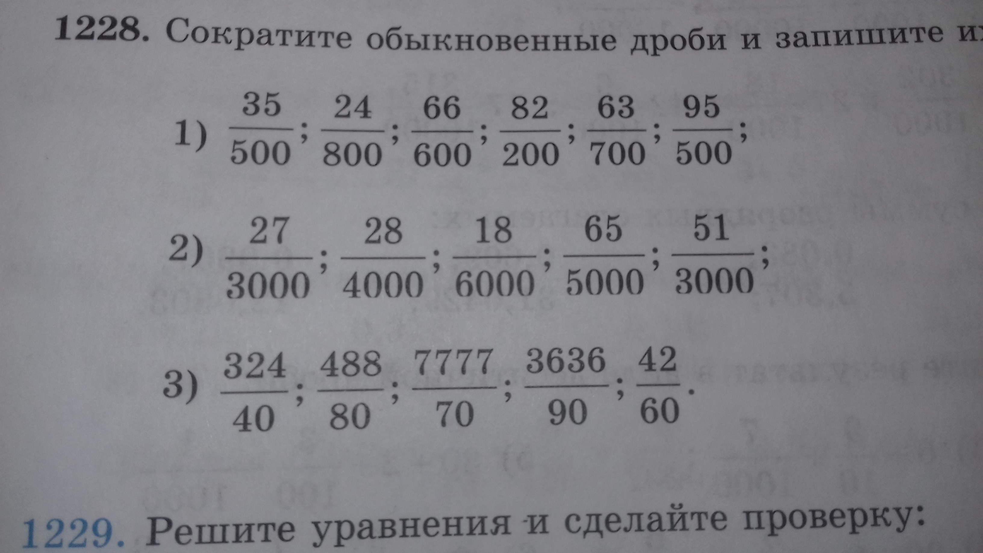 Сократите обыкновенные дроби и запишите их в виде десятичных