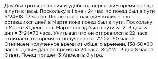 Поезд отправился из Москвы 28 марта в 10 часов вечера и прибыл к месту назначения через 5 суток и 18 часов. Назови дату и время прибытия поезда.