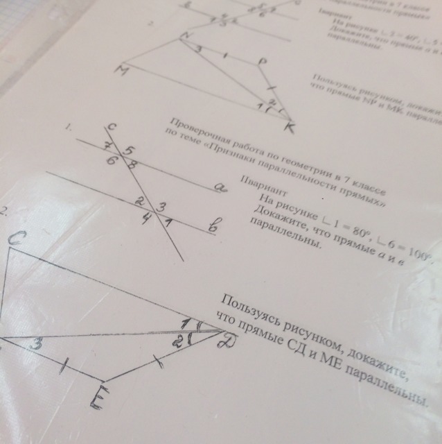 Надо доказать, что если при пересечении двух прямых секущей соответственные углы равны, то прямые параллельны.
