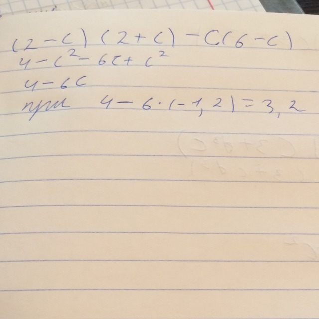 (2-C) (2+C)-c(6-c)=4-с²-6с+с²=4-6с