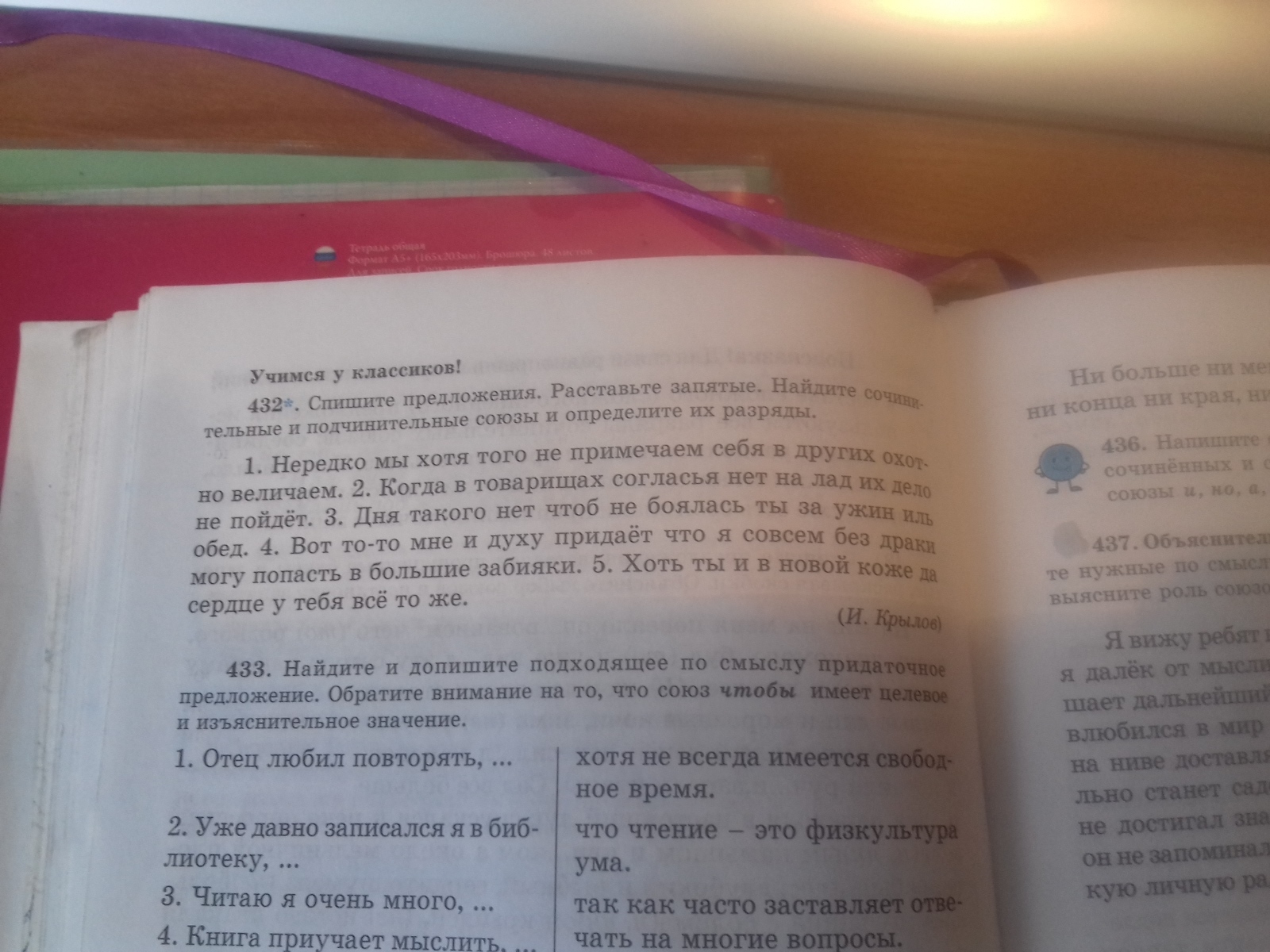номер 432 спишите предложения растааьте занятые найдите сочинительные и подчинительные союзы и определите их разряды