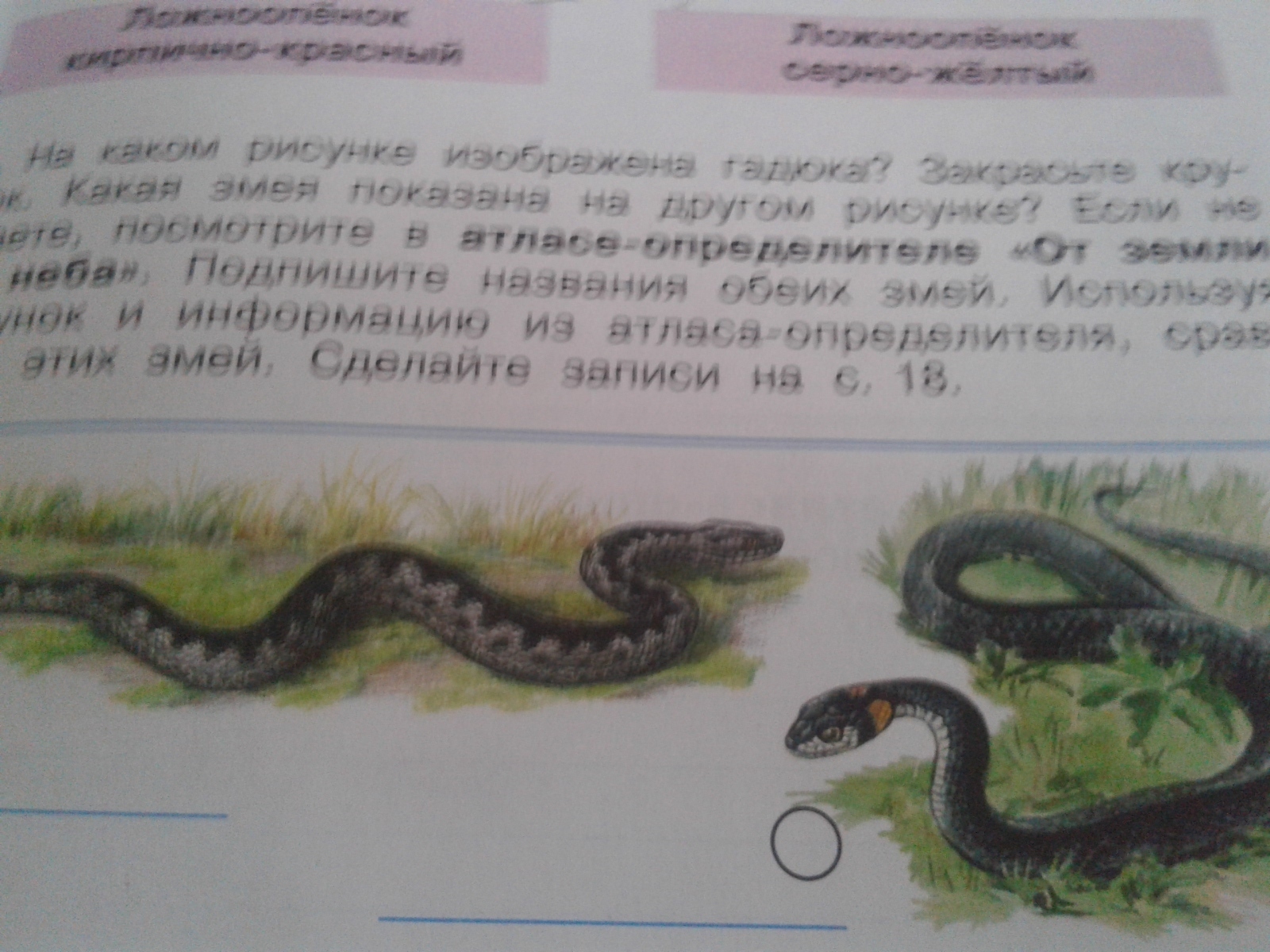 Подпишите названия обеих змей,сравните их сделайте записи на странице 18