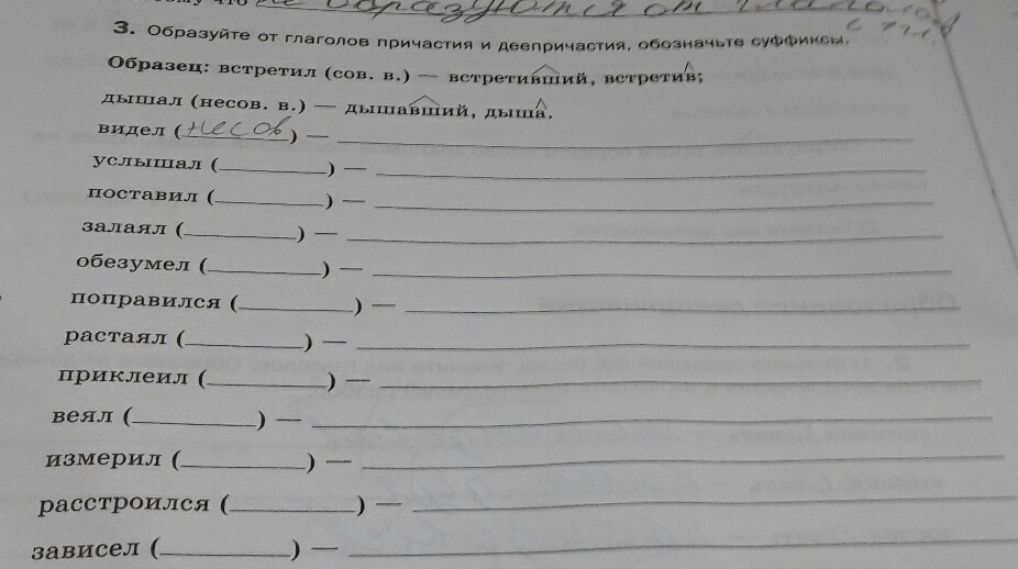 Видел(несов.вид)-Видевший,суффикс ВШ, увидя суффикс Я.