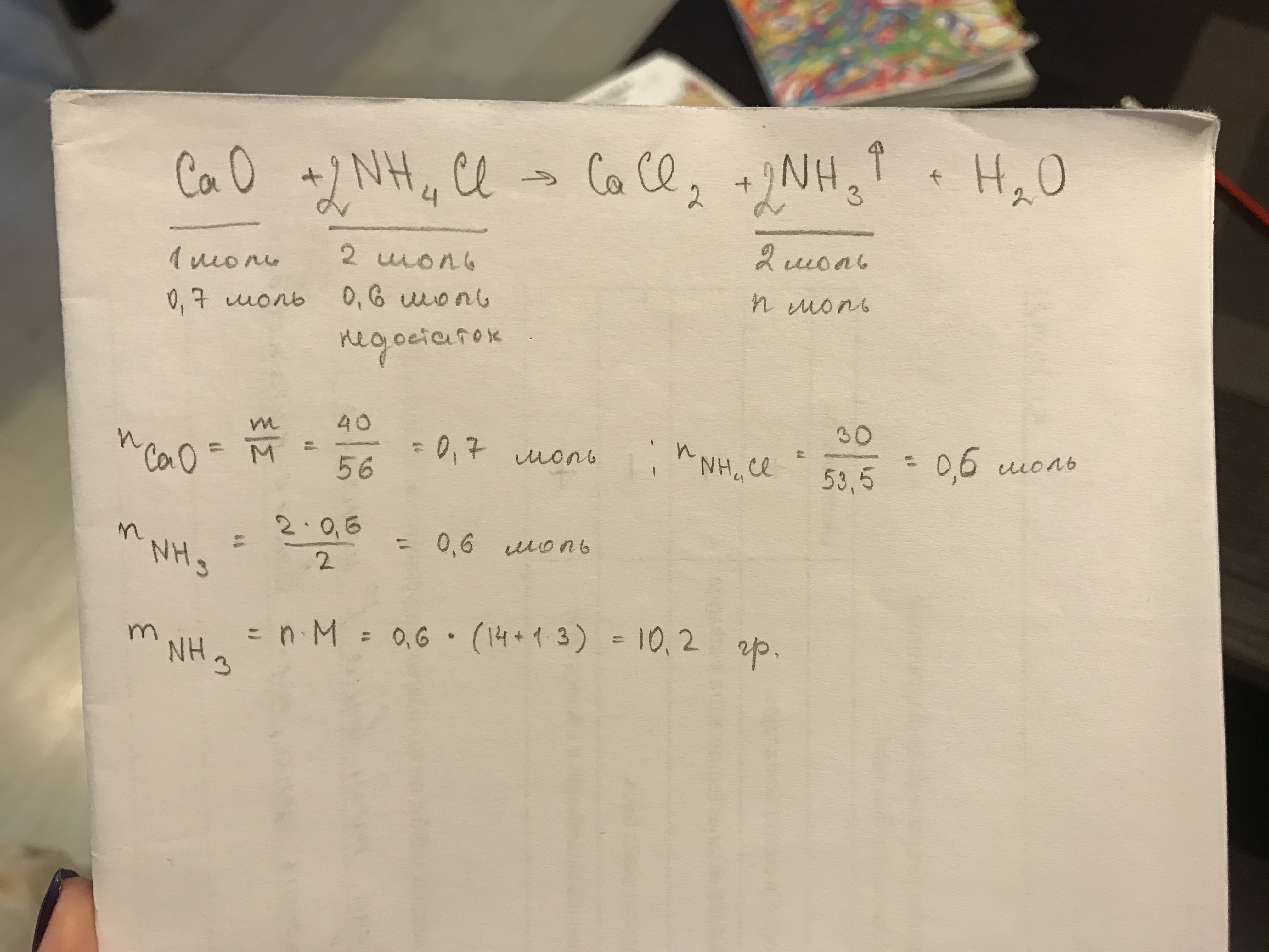 CaO + NH4Cl → CaCl2 + NH3↑ + H2O