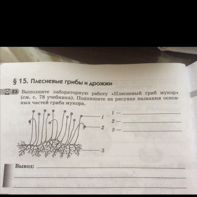 Выполните лабораторную работу "Плесневый гриб мукор". Подпишите на рисунке названия основных частей мукора.