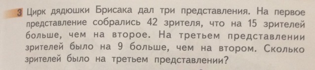 1)42-15=27—второе представление так как в условии сказано что на первое пришло больше зрителей чем на второе
