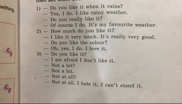 1)-He asked her if she lihed it when it rained.-Sge agreed(согласилась). She said that she liked rainy weather.-He asked her if she raelly liked rainy weather.-She agreed. She told him that it was her favorite weaher.