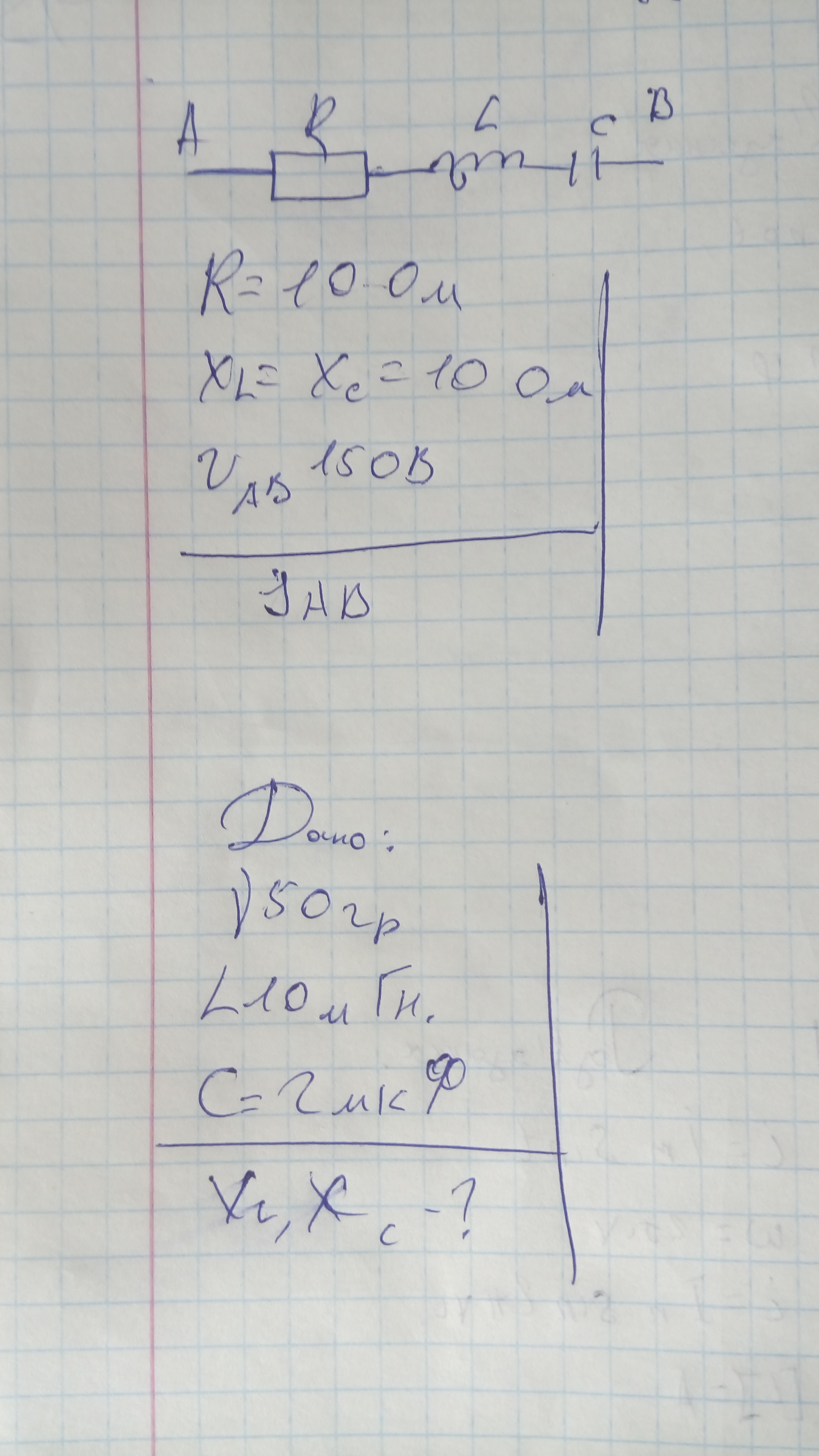2) w=2*pi*v XL=w*L=2*pi*v*L=6,28*50*10*10^-3=3,14 Ом