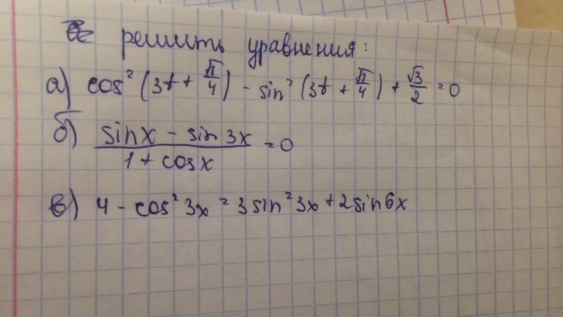 a1=1⇒tg3x=1⇒3x=π/4+πk⇒x=π/12+πk/3