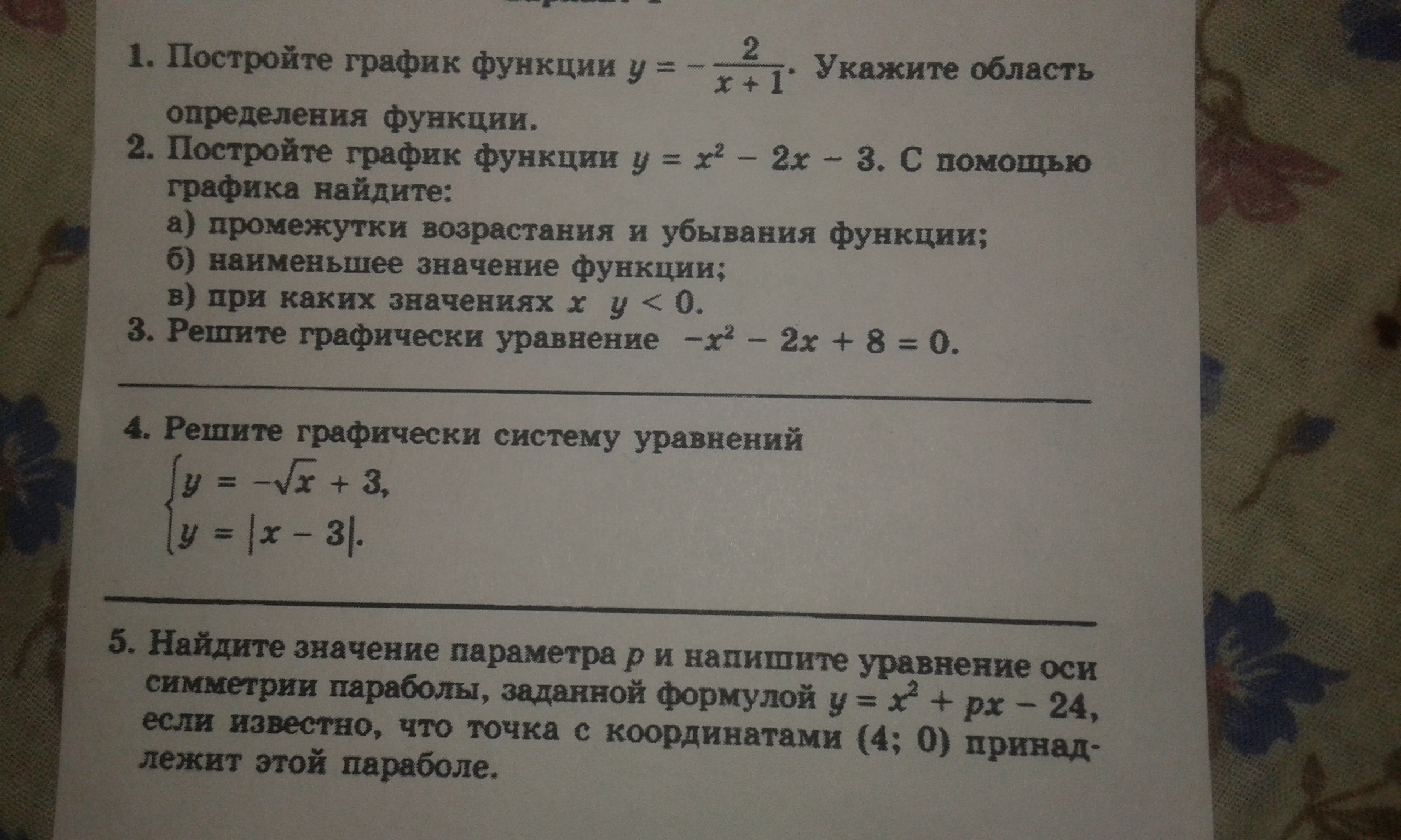 Решите пожалуйста первые 4 задания с графиком и решением заранее спасибо