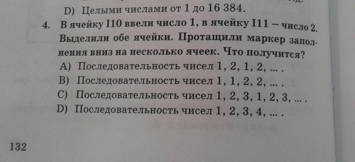 ответ Д потому что не влияет в каком столбце и под каким номером всегда числа будут идти по порядку если их выделить и тянуть вниз за маркер