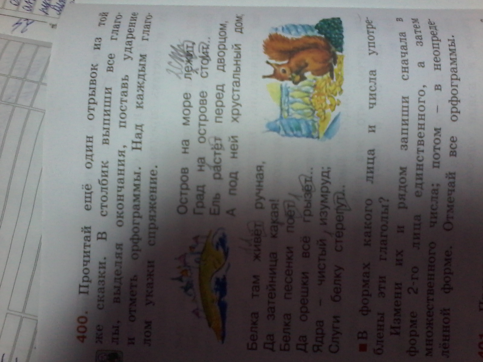 прочитай ещё один отрывок из той же сказки. В столбик выпиши все глаголы,выднляя окончания,поставь ударение и отметь орфограммы. Над каждым глаголом укажи спряжение.
