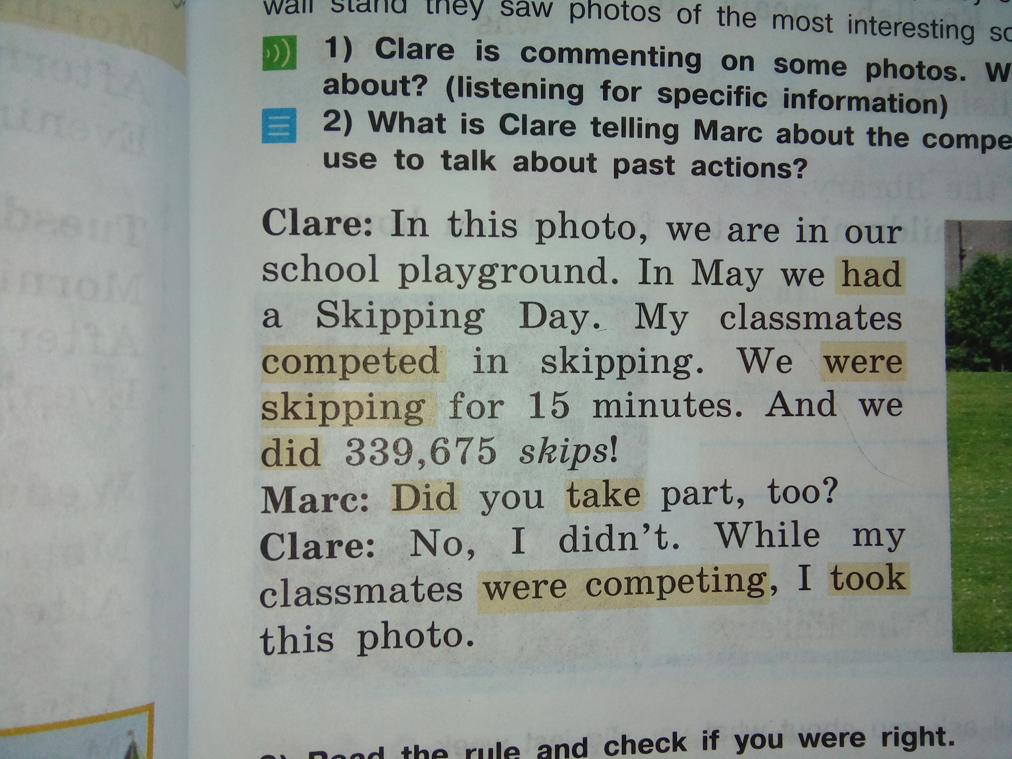 Клэр: я нет. Когда мои одноклассники соревновались я их сфотографирывала