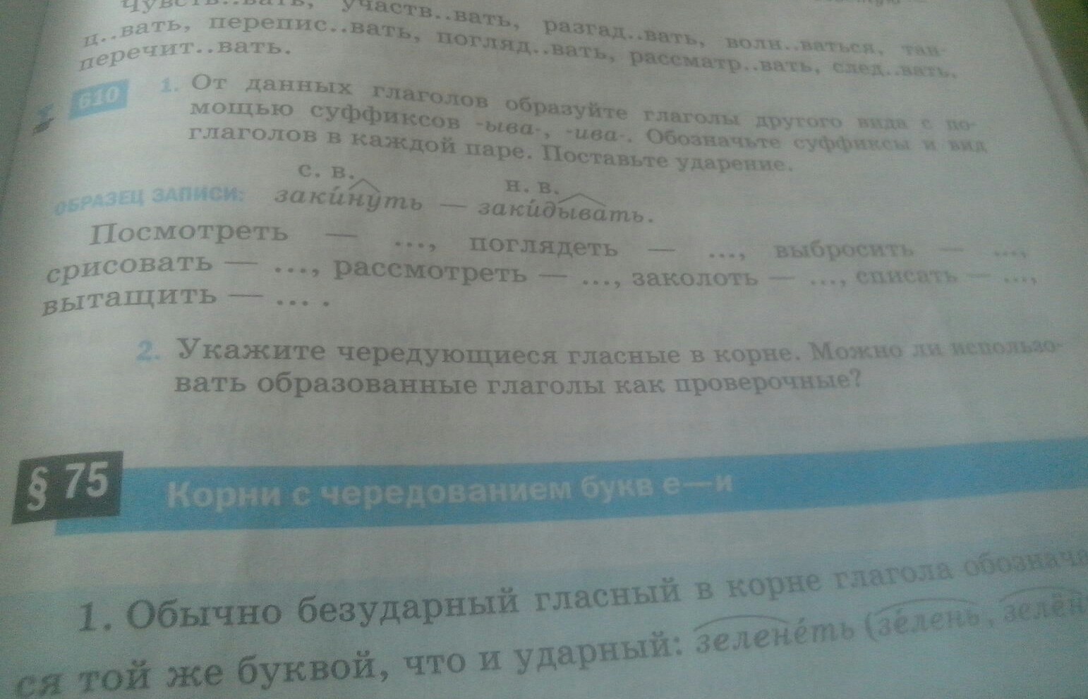 от данных глаголов образуйте глаголы другого вида с помощью суффиксов ыва ива Обозначьте суффиксы и вид глаголов в каждой паре. поставьте удврение.
