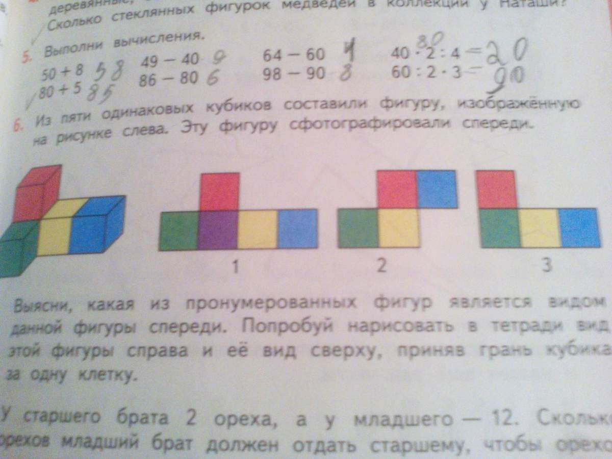 Из пяти одинаковых кубиков составили фигуру, изображенную на рисунке слева. Эту фигуру сфотографировали спереди.