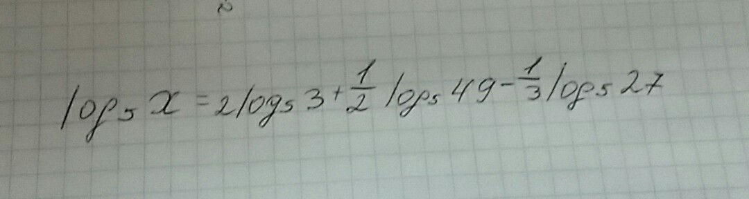 Даю много балов!Найти х,если log5 x=2log5 3+1/2log5 49-1/3log5 27.Напишите на бумажке.