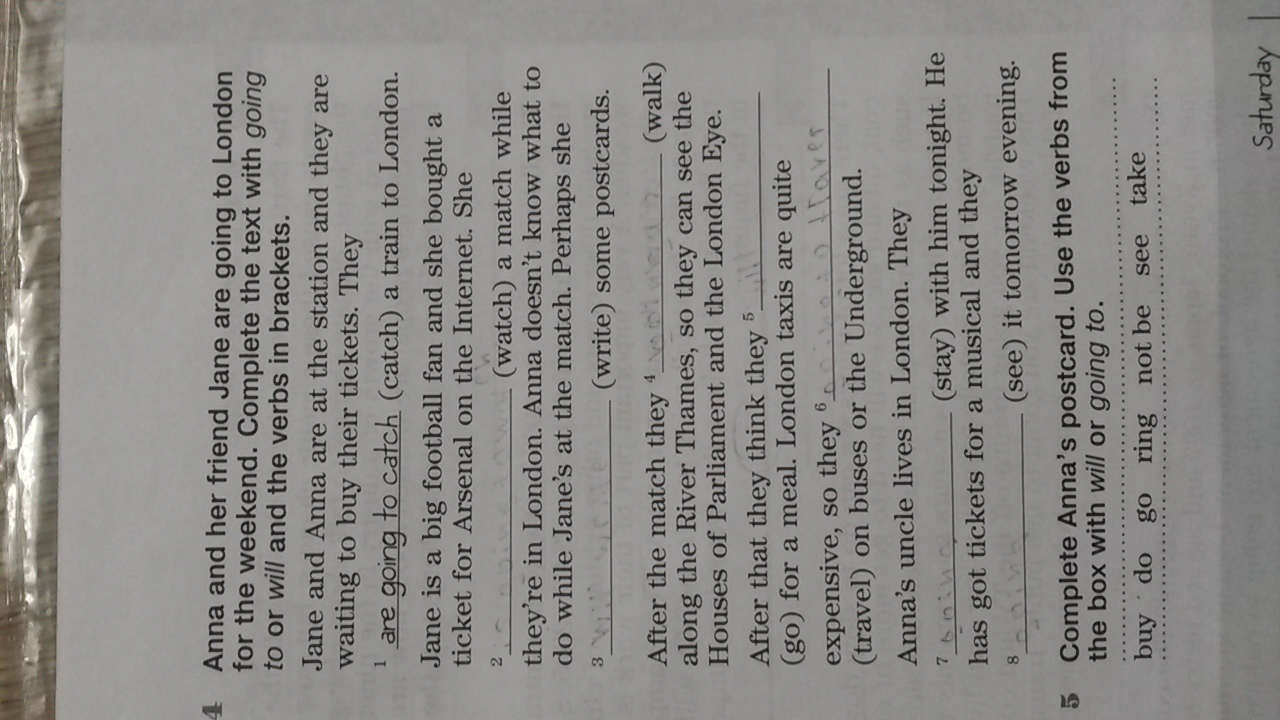 2.is going to watch; 3.is going to write; 4.are going to walk; 5.will go; 6.will travel; 7.will stay;8.will see.