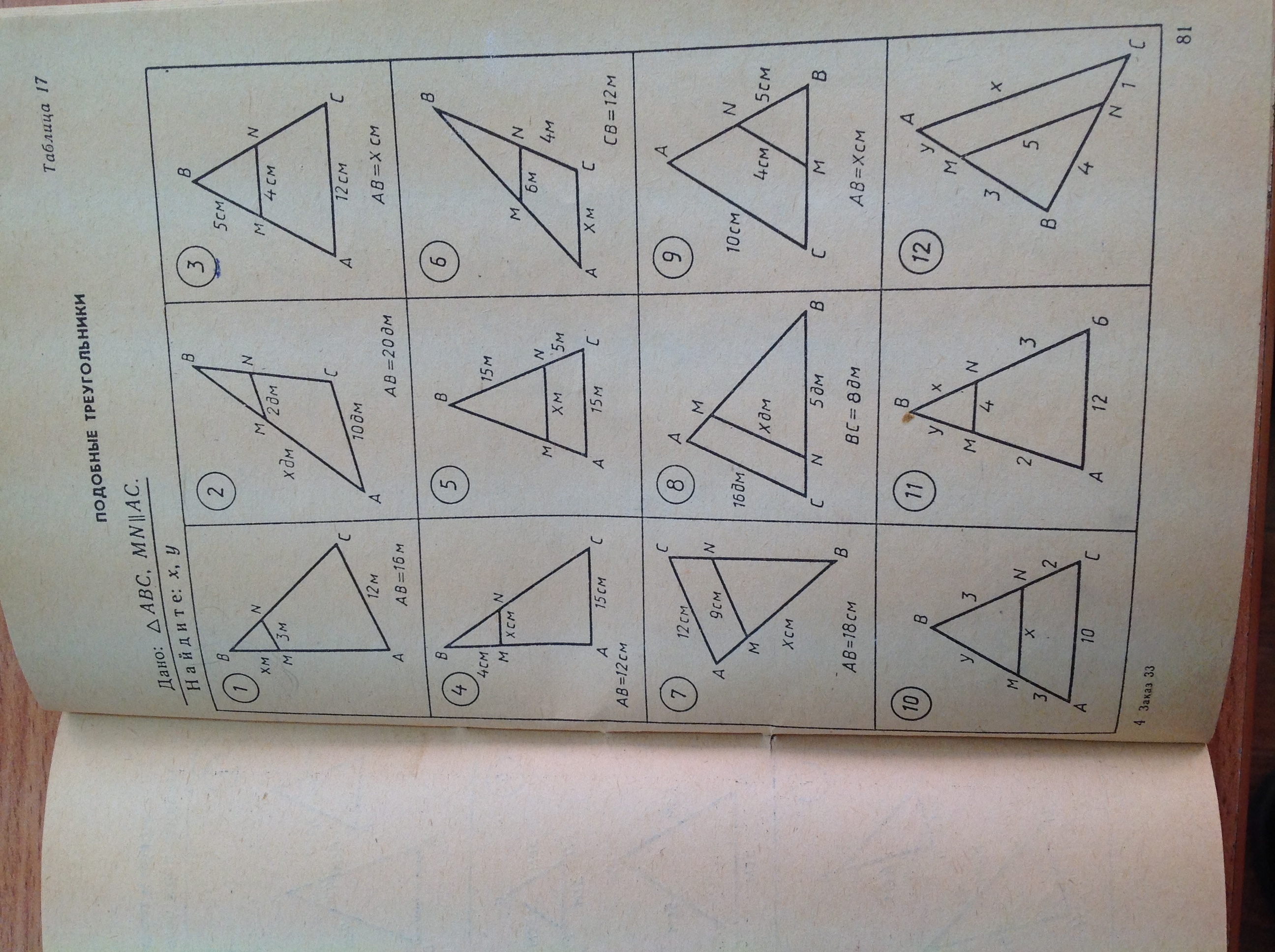 На фото 12 задач! Решить надо 5. Я решил пару тройку, но всё же с сомнениями! Помогите , пожалуйста. Тема " подобные треугольники "