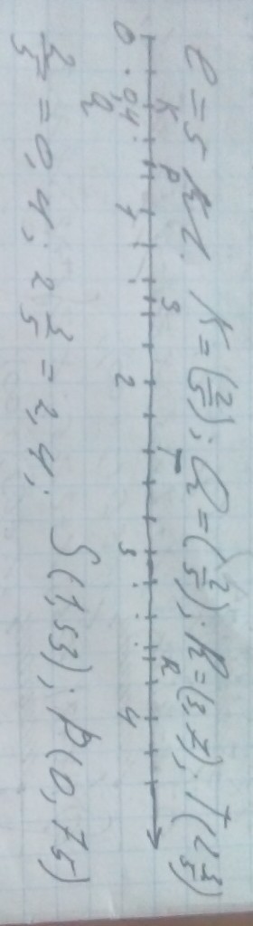 начертите координатный луч, взяв за единицу пять тетрадных клеток, отметьте на этом луче точки К(2/5) Q(2/5) R(3.7) T(2 3/5) S(1.53) P(0.75)