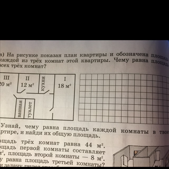 на рисунке обозначены номера комнат, 1-18м;2-12м;3-20м.
