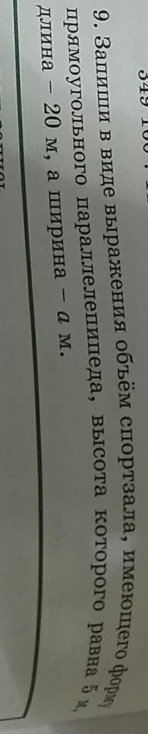 У тебя получается так: 5 * 20 * а = 100а - объём спортзала!!!