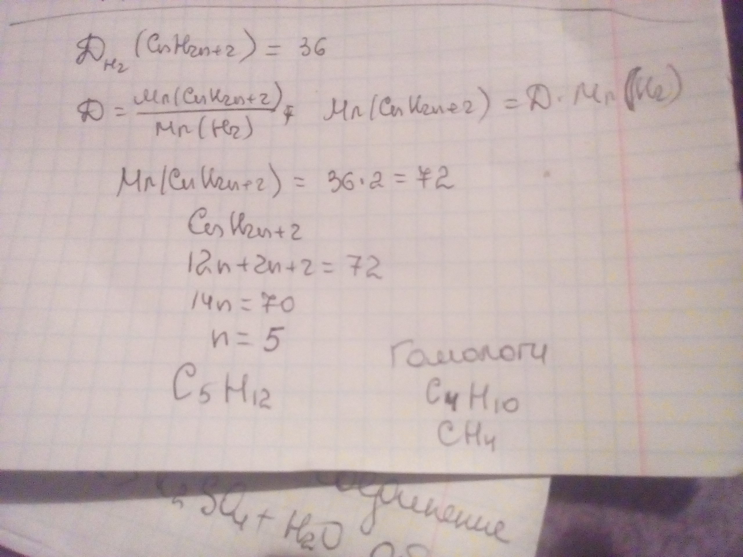Визначте молекулярну формулу насиченого вуглеводню густина якого за воднем 36. Наведіть структурні формули двох гомологів цього вуглеводню.