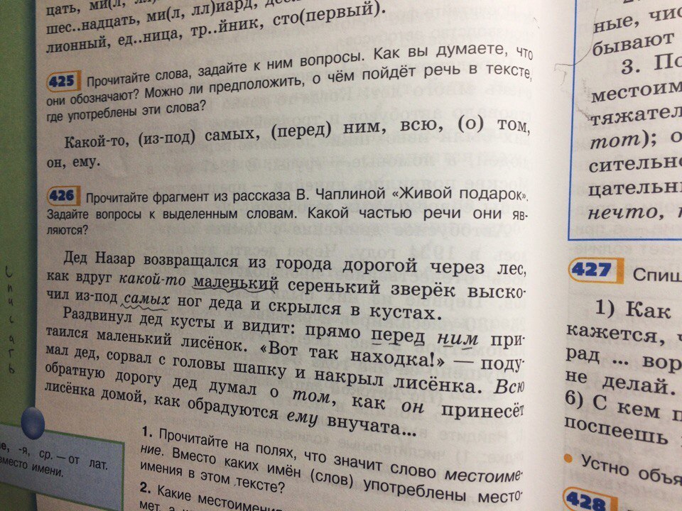 Прочитайте фрагмент из рассказа В. Чаплиной "Живой подарок" Задайте вопросы к выделенным словам. Какой частью речи они являются?