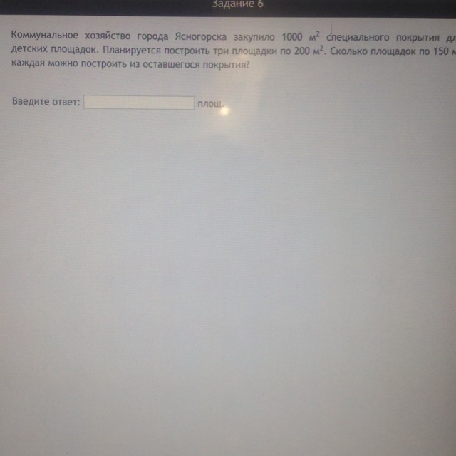 1000м^2 , еще 3 площадки по 200 м^2 это 600м^2 , остается 400 , делим на 2 , остаток 100м^2 остается ...это задача по житейски решается ответ 2 площади !)