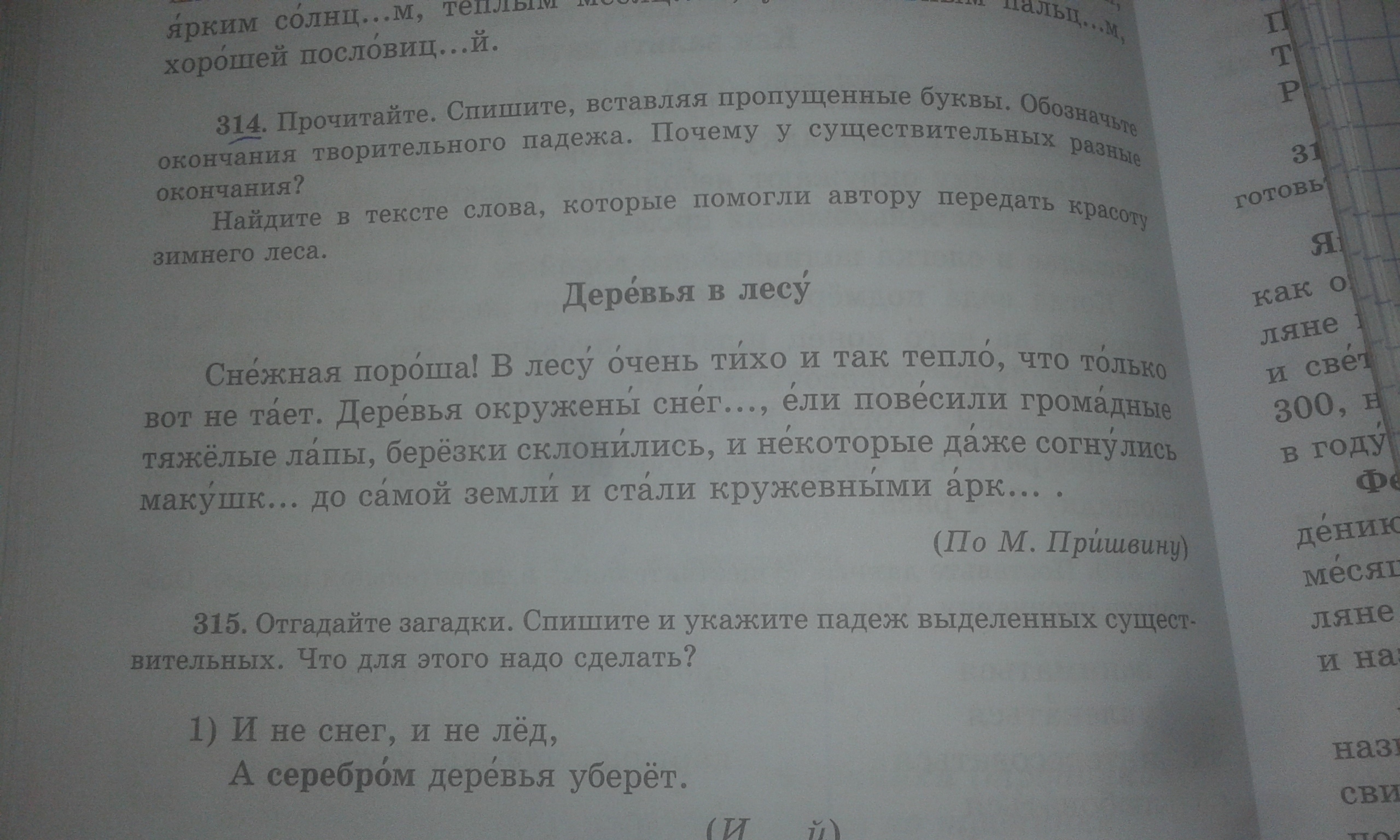 Деревья окружены (чем?) снег|ом| -Т.п.