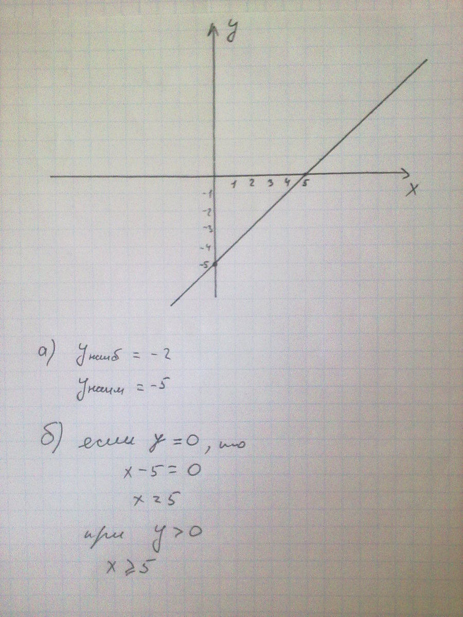 Очень легкое задание ,если не полениться и НАРИСОВАТЬ ГРАФИК у=х-5