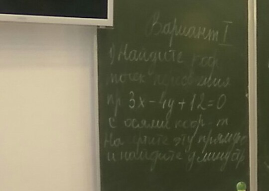 срочнооооооооооО!!!! найдите кор. точки пересечения при 3х-4у+12=0