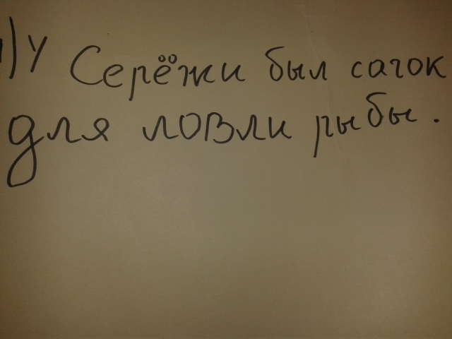 4 ) предложение ... У Сережи был сачок для ловли рыбы
