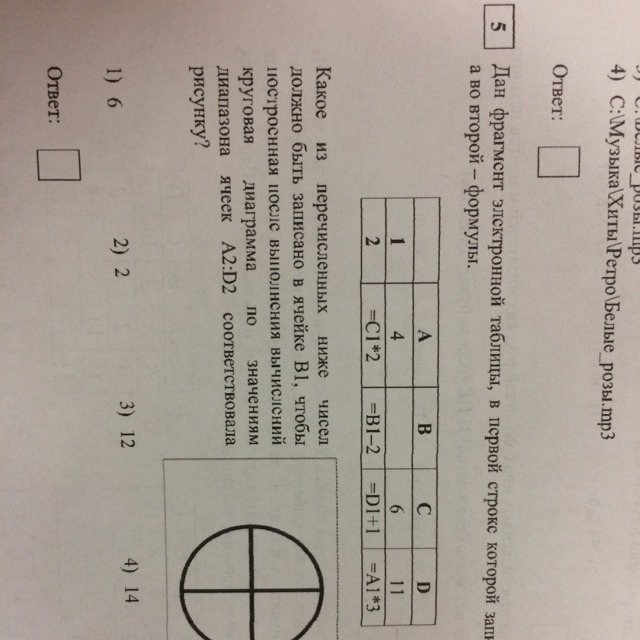 Дан фрагмент электродной таблицы в первой строке которой записаны числа а во второй формулы