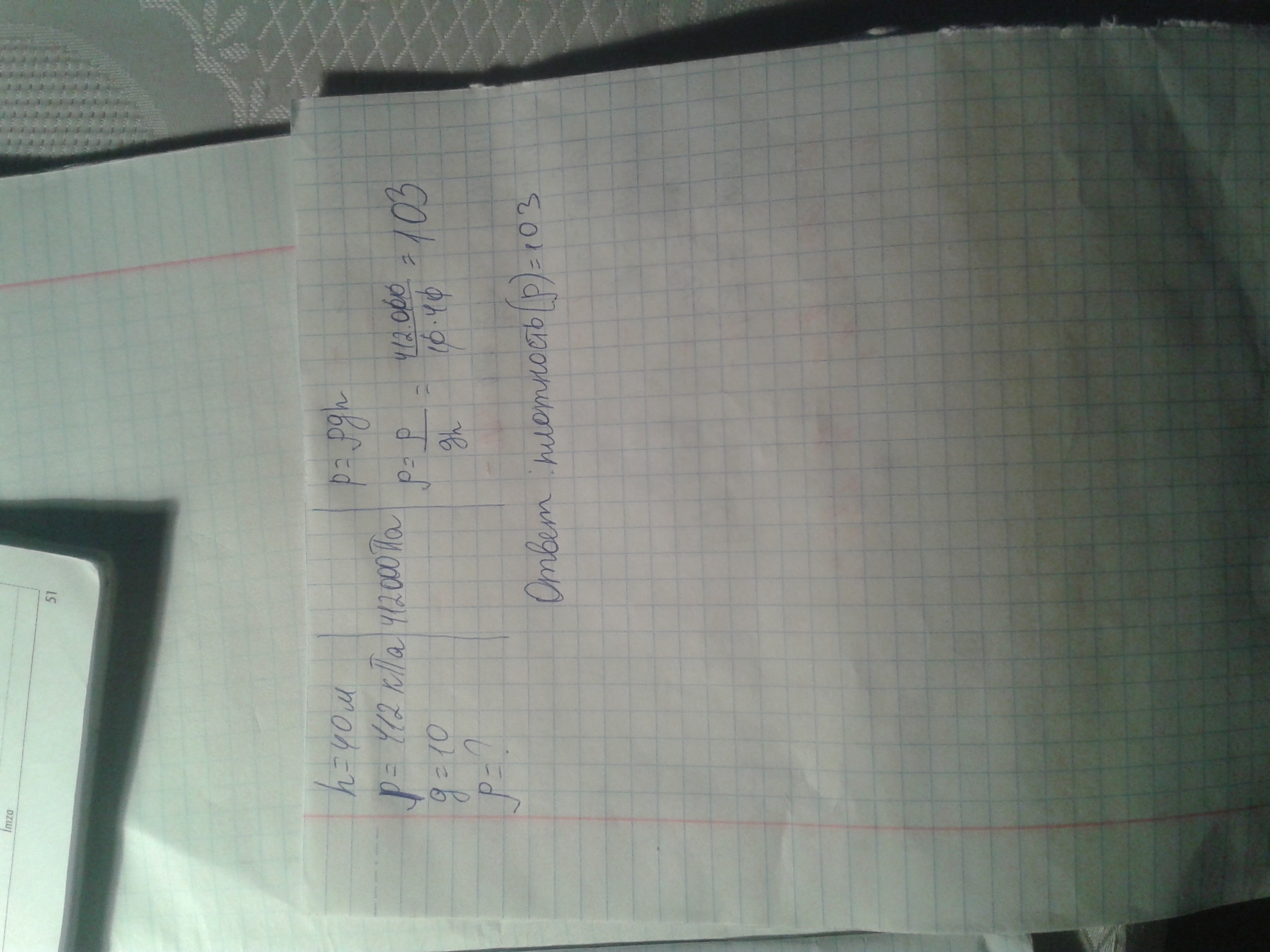 давление равно прлизведению плотности,высоты и ускорения. плотность же равна отношению давления к произведению ускорения и высоты