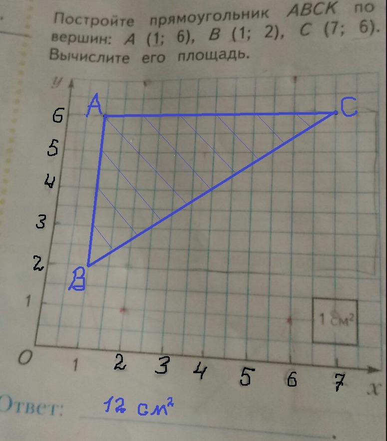 постройте прямоугольник ABCD по координатам трех его вершин A1 6. B1 2. C 7 6 вычисли его площадь