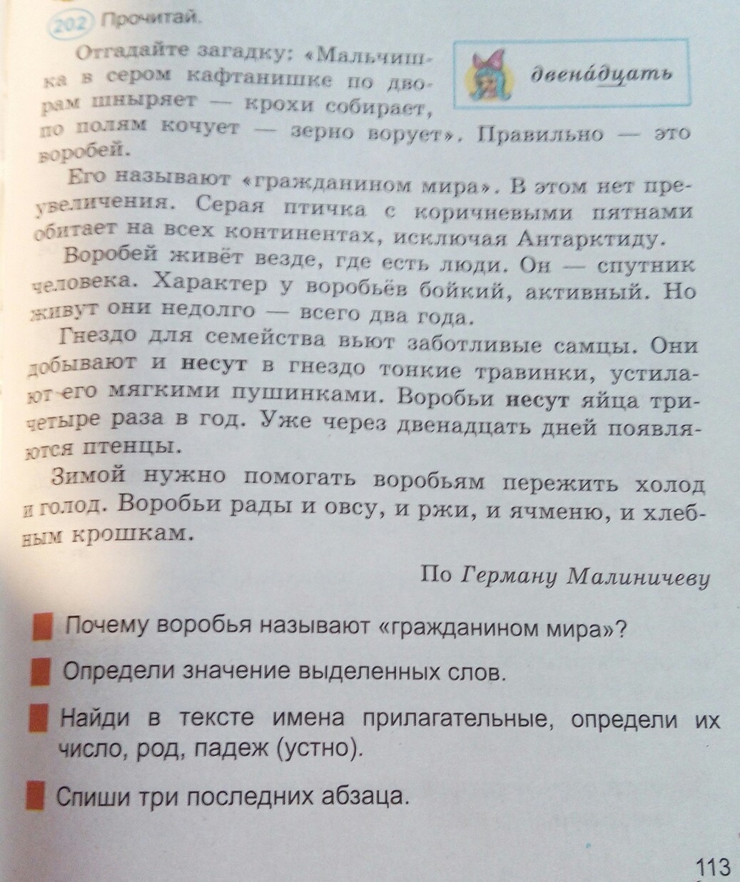 ответ на вопрос 1.- Воробья называют " Гражданином мира", потому что он обитает на всех континентах, кроме Антарктиды...
