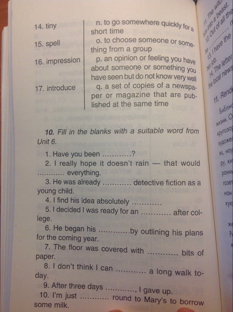 ТАМ НАДО ВСТАВИТЬ ПО СМЫСЛУ ИЗ 9 УПРАЖНЕНИЯ ( В 9 НОМЕРЕ ОНИ СЛЕВА)